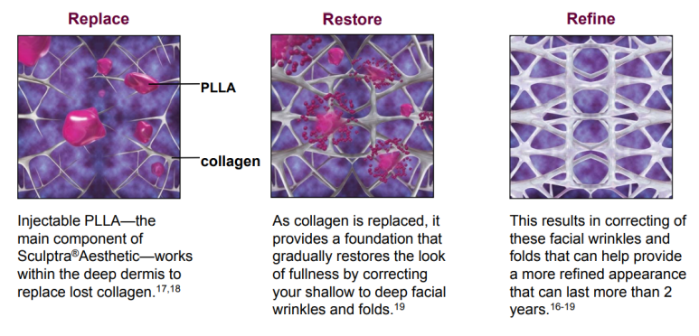 2) 주입된 PLLA 성분이 분해되며, 콜라겐 형성을 자극